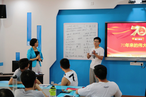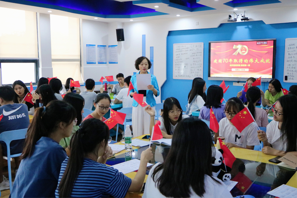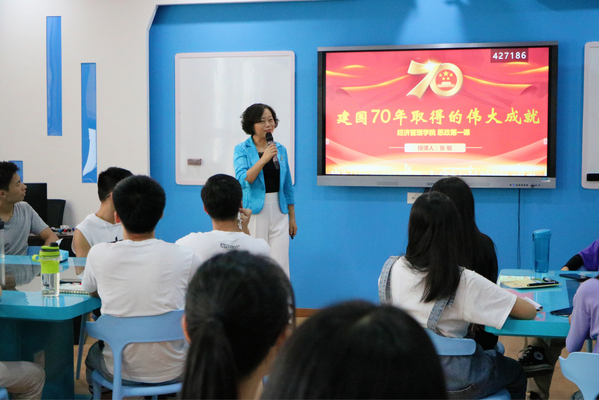 2019年9月30号下午,经济管理学院思政第一课在11号教学楼翻转课堂教学中心举行,由张敏院长讲授,授课的题目为《建国70年取得的伟大成就》。我院辅导员陈佳子,18级市场营销1班的学生共同聆听了此次课程。