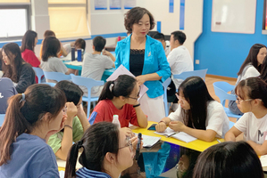 (张敏院长指导学生讨论) (学生们热烈讨论)