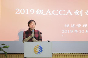 马越副处长表示很荣幸参加2019级ACCA创新开班仪式,并对加入ACCA班的同学们表示热烈祝贺。她引用ACCA官方网站首页的英文词组 “Think ahead”阐明了ACCA具有前瞻性的优势,希望同学们珍惜时间,培养国际视野,做好人生规划,树立远大理想,刻苦拼搏,不断在竞争中脱颖而出,同时希望ACCA班成为同学们圆梦的地方。最后,她还结合经管学院当前发展的特点提出了以人才改革为抓手,进一步拓宽“校企”,“校校”,“校地”和国际合作渠道,进一步探索商科国际认证,使教学标准与国际接轨,打造出省内一流,甚至国家一流专业的新要求和美好祝愿。