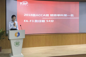 随后,对2018级ACCA班优秀学生和单门课程第一的学生开展了颁奖仪式,刘春梅老师重点介绍了几位颁奖的领导,尤其向各位学生隆重地介绍了新就任的学院党总支书记兼院长王兴邦教授。张敏处长、谭润志处长和王兴邦书记及院长分别为获奖学生颁发获奖证书和奖金。钟咏真、詹佳敏、林子琦三位同学发表了获奖感言。她们结合自己一年的感悟从课程学习、考试技巧和各种学习生活的时间安排上做了深入浅出的分享,以自我为案例鼓励各位同学和学弟学妹,既然选择了远方,就要风雨兼程,方可见绚丽彩虹。