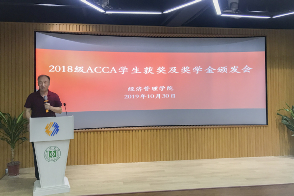 10月30日下午,2019级财务管理专业ACCA(国际注册会计师)创新班的入学讲座和2018级ACCA学生获奖颁发仪式在11-501课室举行,出席会议的有教务处张敏处长、学生处谭润志处长、楷博财经教育云小晰女士、经济管理学院党总支书记及院长王兴邦教授、郑党生副书记、林宽副院长及辅导员老师。会议由学院协同创新与育人中心主任刘春梅老师主持。