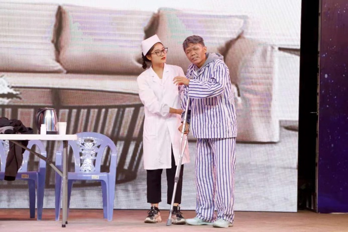 小品《老兵》为我们演绎了一位风烛残年的老兵对祖国深深的爱,演员们精湛的演技拨动着台下观众的心弦。