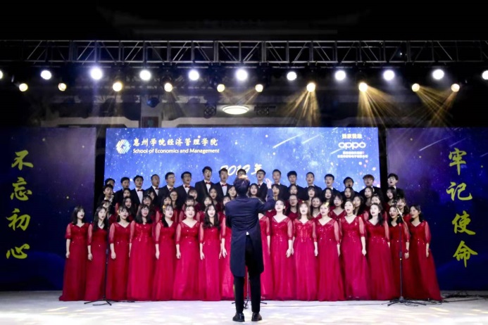 最后,经管大学生合唱团为大家带来歌曲《夜空中最亮的星》、《可惜不是你》、《我爱你中国》,在合唱团悠扬的歌声中晚会徐徐落下帷幕。