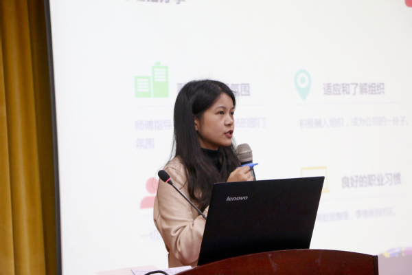 肖媞燕经理介绍了顺丰的发展历程和企业文化,谈及了我校与顺丰公司共建省级实习基地的历程,表示双方未来还将继续合作,贯彻校企合作,协同育人的理念。