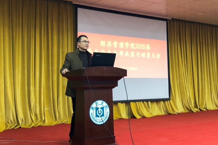 随后林宽副院长对2020届毕业生毕业论文与毕业实习进行了具体的部署,强调了这两部分总共有16个学分,指出今年我校将首次使用知网系统,毕业论文写作全过程均在系统中体现,对毕业实习将继续采用校友邦系统,全方面规范实习工作。最后提出毕业实习就是要培养专业知能与职业伦理兼备的优质人才,达到“毕业即就业,上班即上手”的目标。