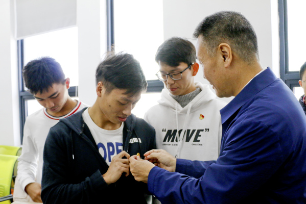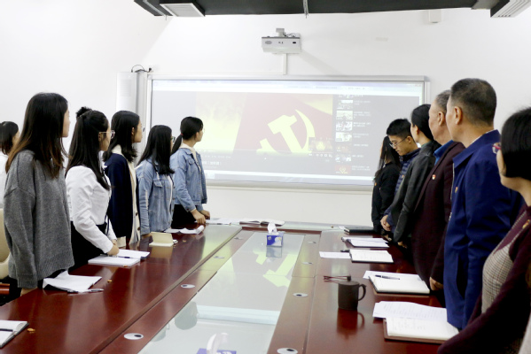 随后,郑党生副书记宣读了第60期预备党员的名单。紧接着,在场的老党员为预备党员佩戴党员徽章。在陈静老师的领誓下,全体党员和预备党员面向党旗,庄严宣誓。