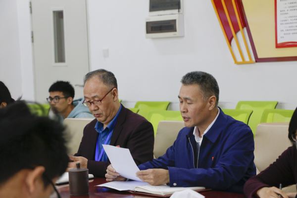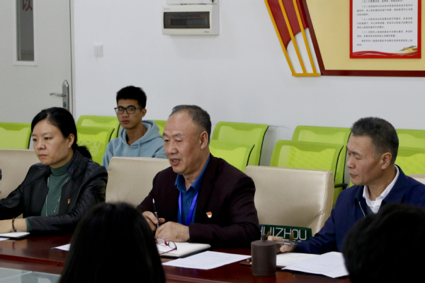 党总支王兴邦书记以一名老党员的身份欢迎预备党员加入世界上最大的执政党组织—中国共产党。王书记追溯了我党的发展历史,缅怀了我党的创始人,提及了马克思的历史贡献,告诉大家应存有敬畏之心,并珍惜美好的学习时代,学习整个共产党的历史,学习毛泽东政治智慧和治国方略,答好历史和人民交给我们的问卷。同时指出作为共产党人,我们应该要有明确坚定的政治信仰、长期坚持学习的理念、理论与实践相结合的探索精神,要把知识变成一种服务人民的力量。