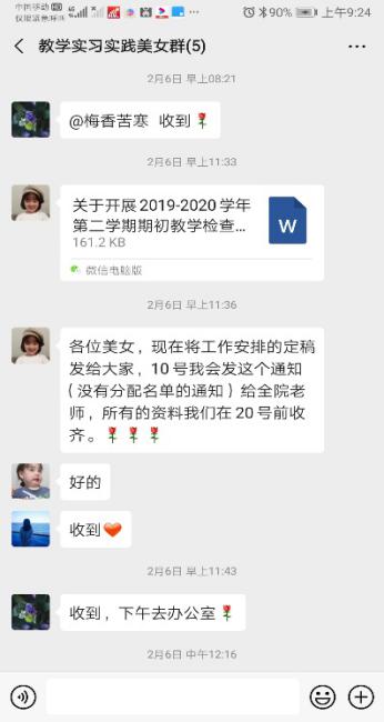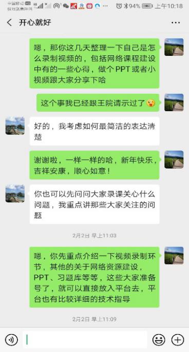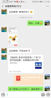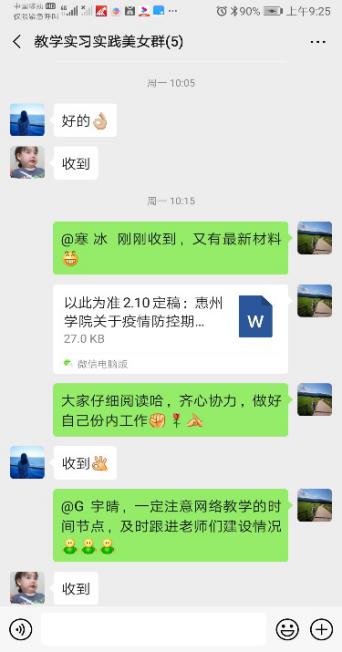 坚定信心,合力致远。尽管疫情让人心情沉重,但学院领导和同事们的关心关怀、电话嘱托、微信问候都让刘副院长备感温暖与幸福。虽然身在重疫区,她却没有消极等待,像一个坚强的“战士”积极投入疫情防控阻击战。刘副院长表示,在学校党委的正确领导下,在学院领导和各位同事的关心支持下,学院将会有条不紊地开展疫情期间的网络教学工作,实现既定的教学目标。