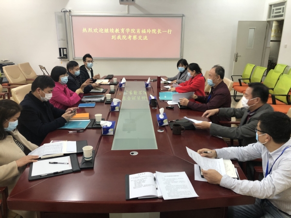 3月31日上午,继续教育学院院长肖福玲携副院长黄鹰雄和邓伟浩等一行五人来我院开展调研和交流工作。我院院长王兴邦,党总支书记郑良才,副院长郭萍,副院长陈秋锋和李红老师参加了交流。