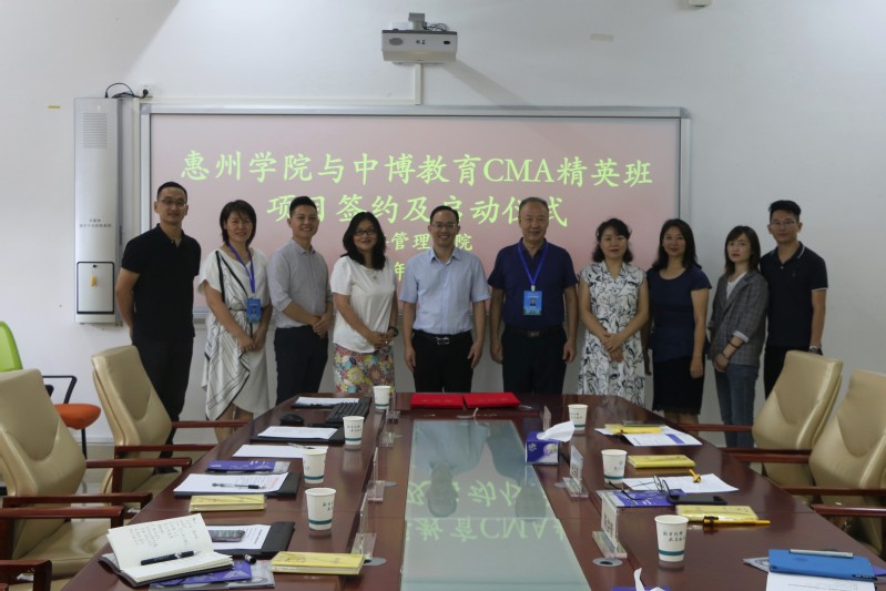 9月1日下午,惠州学院与中博教育合作的CMA精英班项目签约及启动仪式在经济管理学院1508会议室进行。中博教育副总裁及校企合作部总监毛劲梅女士一行6人,我校教务处处长陈益智、经济管理学院王兴邦院长、郭萍副院长出席,会议由刘春梅副院长主持。