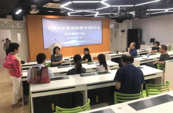 2020年经济管理学院首次开展专插本招生工作,从3月到9月,在招生准备、人才培养方案修订、考试与迎新工作方面积极筹备与认真对待,有239名同学被录取到市场营销、国际经济与贸易和财务管理专业学习。为了做好专插本学生的培养,9月17日下午,经管学院“专插本”教学工作会议在1501跨专业实验室召开,王兴邦院长、郭萍副院长和刘春梅副院长及秋季学期为专插本学生授课的8位教师参加了会议,围绕着“如何开展专插本学生的教学与培养”开展研讨。