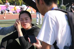 刘金姣老师表示她自己作为一名老师应该做好表率,报名参与了校运会的项目,希望借此激励同学们积极参与运动项目。刘老师表示因为自己平时有空就会去操场跑步,所以到了赛场上就感觉不那么紧张,她表示今天运动场上的氛围很好,充满着青春洋溢的气息,老师表示明年有空的话,仍会来参加校运会,将运动精神贯彻到底!刘老师祝运动赛上的健儿赛出自己的风采,为经管健儿加油!