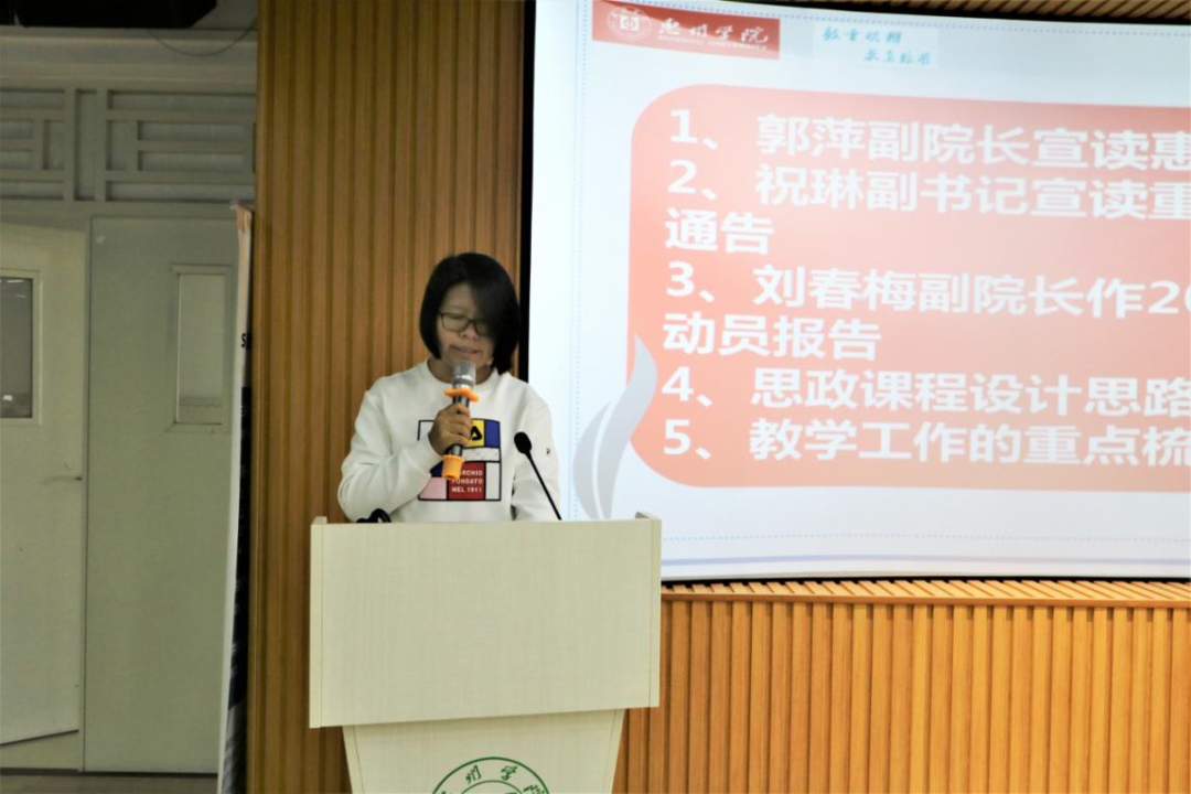 郭萍副院长向我们宣读了惠院发【2017】173号文。该条文主要围绕排课、停课、调课、代课四个方面开展,对课程安排制定了规范化、合理化的要求。郭萍副院长向与会人员说明了相关原则与注意事项,提到了针对各类情境的相关办法,强调全体教职员工应严格遵守相关条文规定,共同维持良好的教学秩序。