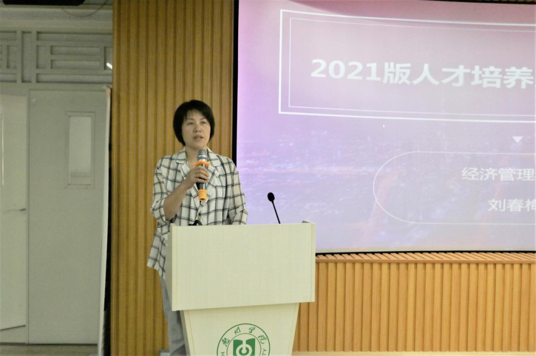 刘春梅副院长作2021版培养方法修订的动员报告。她阐述了修订工作体现“学生中心、对标优化、产教融合和凝练特色”的总体思路与具体要求。重点提出并系统回答了以学生为中心的“目标、需求、过程、评价、改进”五个方面的核心问题,从而形成具体的论证要点和修订流程与进度。此外,她还强调构建课程体系的重要性,提出每位教师要充分参与、论证课程体系、课程内容设计等,每个专业要充分结合国家、行业与企业、家庭、学生等多方面的需要,邀请各方参与进来、充分开展方案论证,实现全员育人。