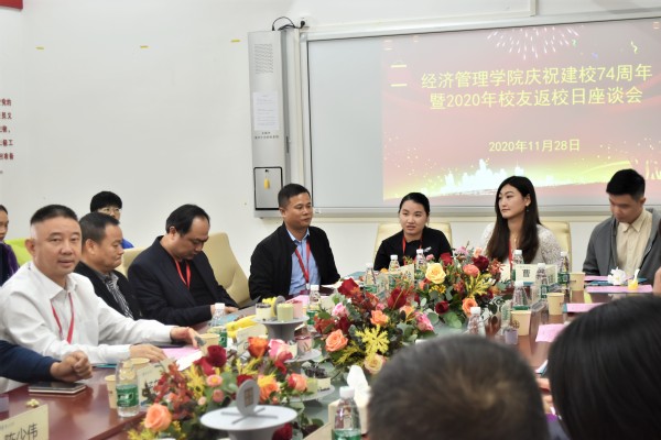 11月28日,经济管理学院召开庆祝建校74周年校友座谈会,来自各地的校友代表与学院领导班子成员、教师代表、在校生代表欢聚一堂,追忆同窗旧事,再叙师生情谊。座谈会由党总支书记郑良才主持。