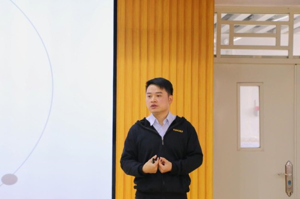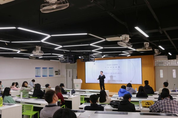 紧接着,陈锐彬结合当下疫情启发同学们要保持自身思维的活跃度,做一个积极的思考者,积极探索行业可发展的机会。他还劝诫同学们要多思考,多实践,同时也跟大家分享了习近平总书记所说的一句话:“伟大的事业,始于梦想,基于创新,成于实干。”