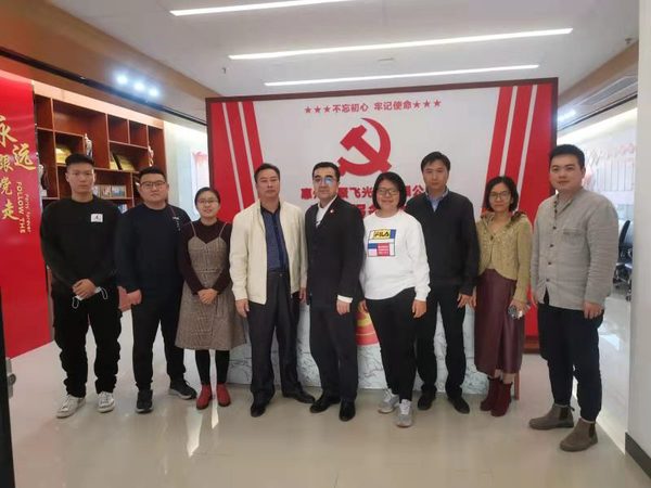 在唐巧明书记、副主任的陪同下,校方一行首先来到惠州市聚飞光电有限公司。该公司是一家总部在深圳的上市民营企业,2018年下半年惠州生产基地建成投产。聚飞光电有限公司党支部书记、总经理宋东在企业展厅向大家详细介绍了企业的发展情况和党建工作成果。宋东书记表示企业文化和党建工作不是孤立的,而是相辅相成的。在企业中,要想充分发挥党组织的强力引领作用,发扬党的优良作风,就要将党建工作与企业文化深度融合,以企业文化建设为载体开展党建工作,有利于增强党建工作的吸引力、感染力、号召力。郑良才书记表示企业内部有着高效、全面的工作方法,有着较为成熟的企业文化及先进的企业管理制度。近些年,公司结合自身实际,主动探索、积极作为,在党建工作中形成了一系列好经验、好做法,值得我们学习和借鉴。