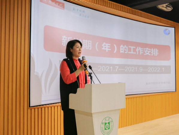 郭萍副院长就科研工作2020年取得的成绩予以总结,对2021年的重点工作予以部署。她表示,2020年经管学院各级立项项目呈较高增长态势,较2019年增长150%;学术交流活动常态化进行,服务地方经济能力凸显。她指出,2021年科研工作着重从以下六个方面开展:一是提高高层次项目申报立项率;二是建立项目管理长效机制;三是推进科研成果审核与统计工作;四是加强科研团队建设;五是构建联系广、交流深的科研合作交流体系;六是加强校地合作、参与地方经济。刘春梅副院长结合学校本科教育大会内容主动对标,就学院重点教学工作安排如下:一是强化专业建设,对标对表;二是推进教育教学改革,以成效为导向;三是深化协同育人工作,搭建创新平台;四是强化教育教学成果;五是建立健全教学监督机制,提升内化,自查自省,互查互学。