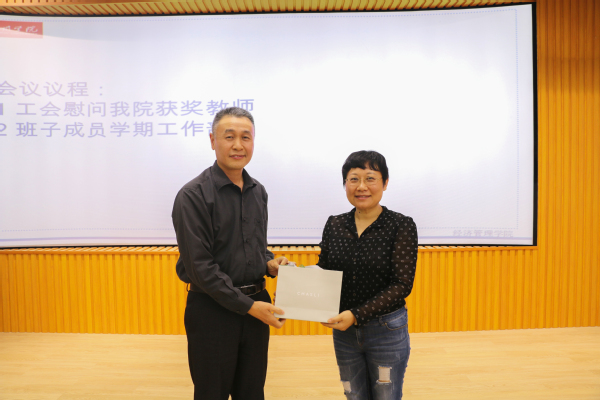 工会副主席郑党生为徐宁副教授赠送纪念品