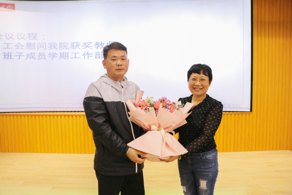 工会常务副主席李富明为徐宁副教授赠送鲜花