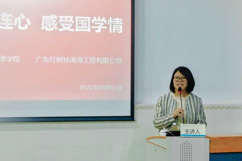 3月11日晚,经济管理学院和广东红树林港湾工程有限公司(以下简称红树林公司)在教学实验楼208课室共同举行主题为“党团心连心,感受国学情”的文化讲座活动。经济管理学院党总支书记郑良才、副院长陈秋锋、审计学系主任熊明良、辅导员张舒婷出席了讲座。经管团校青马班学员、入党积极分子及广东红树林港湾工程有限公司入党积极分子陈良吉、区世亨、蔡禹樽、李智强、岑国强等同志共同参与学习,讲座由党总支副书记祝琳主持。