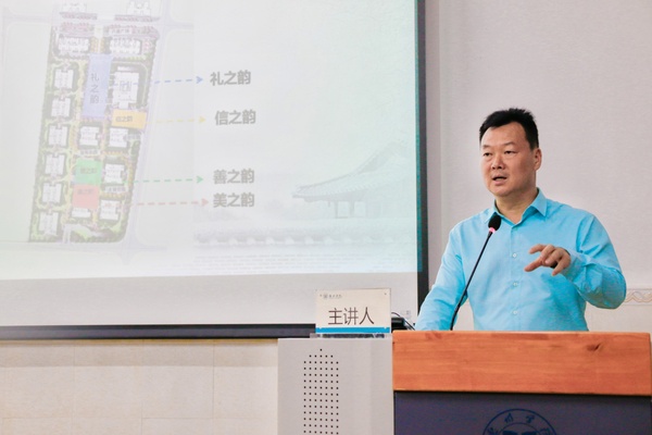 惠州学院兼职教授邢中徽以《八圣文化与智慧人生》为题,用独到的观点由对安居乐业的解读引出八圣国韵文化体系——八圣、八馆、八韵,并梳理了三者之间关系。他将八位圣贤的作为分别凝练成为对应八字:“仁、道、和、法、智、谋、匠、生”,精炼的展现出中国文化的根脉精义,提供了值得现代人学习的行为准则与思想方法。他将八圣文化运用于参与设计的地产项目,打造文道馆、艺道馆、乐道馆、禅道馆、茶道馆、膳道馆、医道馆、武道馆为心灵归栖之所。“八馆”集功能与文化于一体,业主乐于其中,学有所成,心有所悟,持心养性,健体强身,共同引领国韵人文生活方式。八字八理,八园八相,方可得自然之真味。