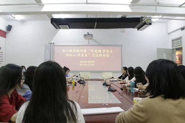 4月28日晚,经济管理学院以“听党课、学党史、话初心、促成长”为主题,在1508会议室开展了一次生动的党史学习交流研讨会。第63期党员发展对象培训班学员参加了此次会议,党总支祝琳副书记为学员上党课。