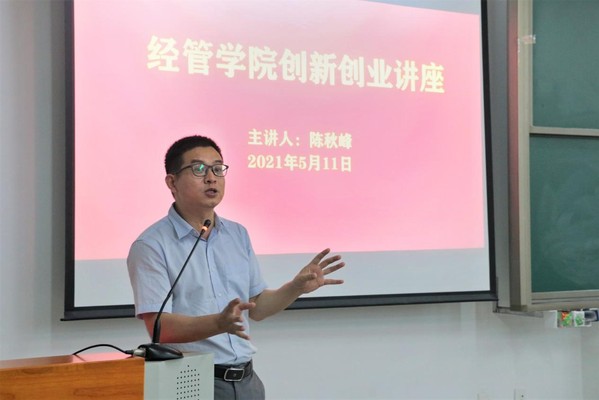 5月11日晚,经济管理学院在旭日楼106课室举办“互联网+”大学生创新创业大赛培训会,经管学院副院长陈秋锋作专题培训讲座。党总支副书记祝琳、辅导员葛青青、梁华玉、孙春莲以及2020级300余名同学参加了本次讲座。