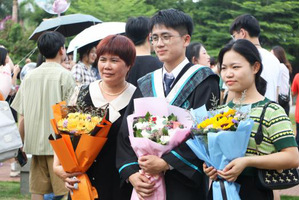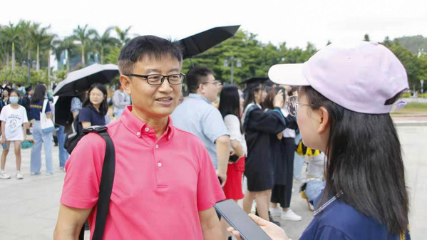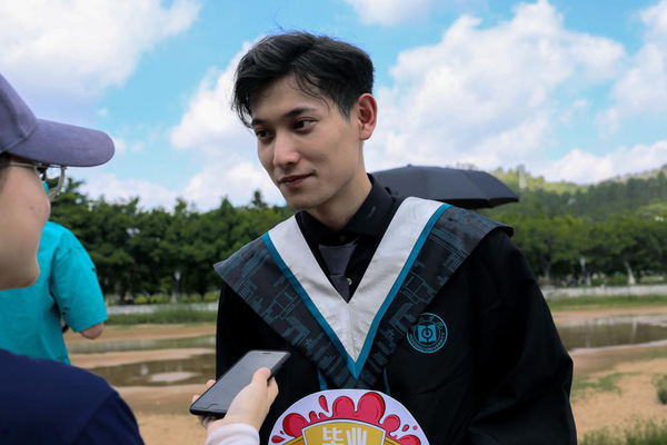张毓雄老师:毕业照是同学们在校最隆重的一次合影,自己很开心每年都能和学生们一起分享毕业的喜悦,老师希望同学们可以用己所学,诚心诚意地从基层做起,一步步强大自己。