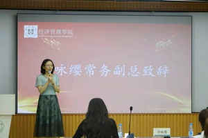 随后李咏缨常务副总代表“惠正”致辞,她说到作为一家国内资产评估行业的百强企业,具有细分的优势,并与经管学院建立了战略合作伙伴关系,希望公司能够为学生提供更好的教学实习机会,她也欢迎对资产评估有兴趣的同学们前往贵公司实习、就业,各位教师能够与公司开展广泛的合作,最后,李咏缨老师预祝本次策划大赛圆满成功。