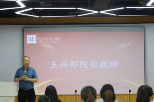 首先王兴邦院长用三组词致辞。第一组词是判断和选择,表达本次决赛改在学校进行的起因判断和选择决定,惠正公司的助力成全了学生在校园内开展竞赛,对一件即将发生的事情的判断和选择,将会伴随学生未来成长的每个阶段,利弊得失需要我们自己去评估和掌握,通过本次事项会帮助同学们快速成长;第二组词是致敬和感谢,对惠正公司在我们艰难的分析判断形势时,伸手资助本次赛事让我们做出了事后评判正确的选择表示致敬!同时也感谢学校教务处对本次比赛的积极支持;第二组词是努力与平和心态。希望学生能够以努力的态度去面对赛事,充分展示形象力、表达力和综合实力,赛出理想的成绩,同时要用平和的心态去对待最后的比赛结果。