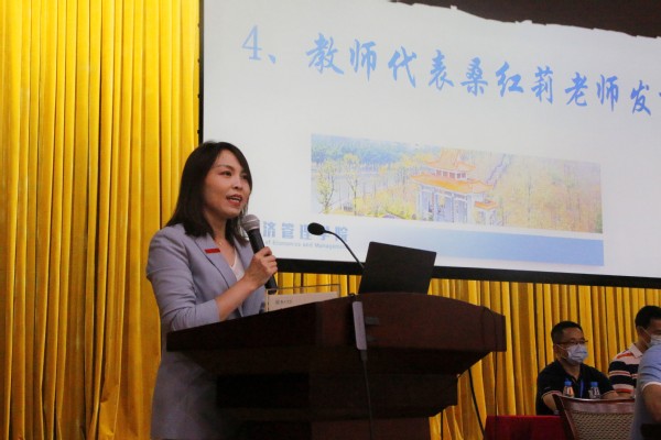 桑红莉老师作为教师代表发言,她从深刻认识大学生活、认真对待大学生活、健康充实地度过大学生活三个方面给同学们指引,并送给同学们三个“锦囊”,即勿忘理想、勤学善思、创业创新。桑老师希望同学们能够胸怀远大理想、敢于直面挑战、积极乐观地去拥抱属于自己的美好世界,绽放属于自己的青春色彩。