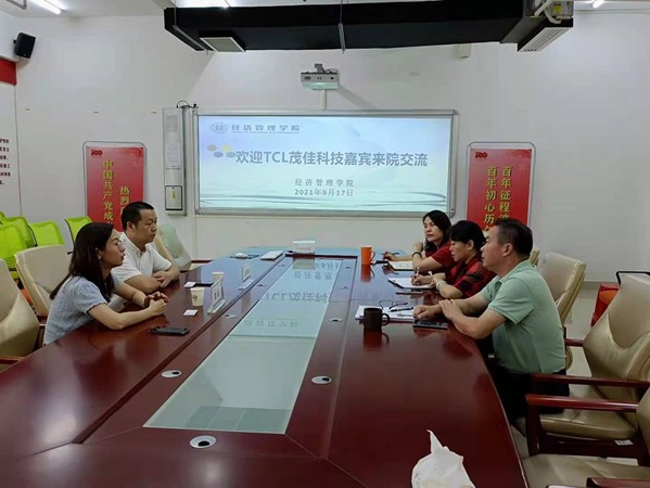 惠州学院培养的应用型人才务实、肯干,在本地形成了良好的口碑,TCL茂佳科技一行基于对经管类人才的需求和认可,2021年9月17号上午在旭日科技大楼B座1508会议室,TCL茂佳科技人力资源部招聘经理王荣华、组织发展经理曹晶莅临经济管理学院进行交流。经济管理学院党总支书记郑良才、副院长郭萍、刘春梅出席了会议。