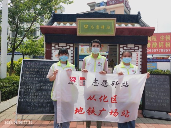 在地铁站志愿值岗时,我会准时到达驿站服务岗亭,认真将岗亭外墙体擦拭干净,细致地整理岗亭存放的宣传手册、志愿者服装等装备,并在岗亭内或周边开展信息咨询、文明引导等各项服务活动,为往来的游客送上从化最美丽的城市名片。