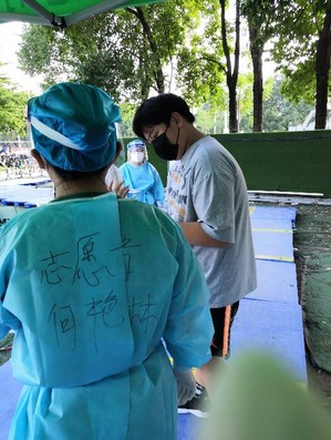 暑假期间,我参加了村里60岁及以上老年人接种新冠疫苗的志愿活动。老年人群是感染新冠病毒后患重症的高风险人群,在各地放宽新冠疫苗接种年龄后,我们周田镇狮石村也开始设点为60岁及以上老年人接种新冠疫苗。在接种疫苗时,老年人接种疫苗难免会有很多顾虑、问题,不清楚流程,秩序混乱等,而我们的工作就是和医生一起为他们细心解答,维护秩序。在参加此次志愿活动前发生了一点小插曲,原本定好的活动由于受到台风天气的影响取消掉了,等到了第二天天气好转后临时接到通知才匆匆赶去,而从这一点小插曲可以感受到,即使有再大的困难,都不能阻挡我们抗击病毒的决心与行动。不管何时,只要需要,我们必定奔赴向前,奉献自己的一份力量。