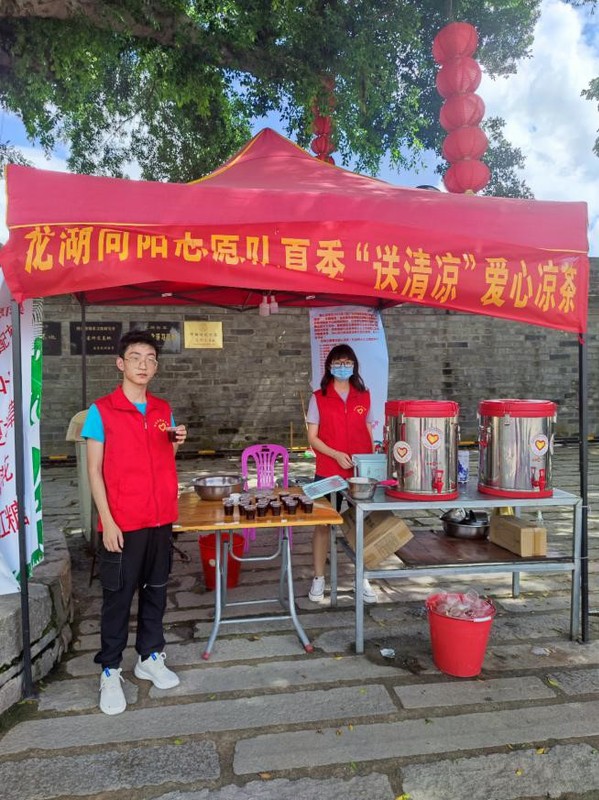 暑假期间,我参加了潮州市潮安志愿者联合会向阳志愿队举办的“爱心凉茶亭夏日送清凉”活动。我们志愿者服务队在广东省旅游重点扶贫项目龙湖古寨门口送爱心凉茶,服务广大游客。在疫情防控有关规定指导下做好防范措施,开展服务工作。游客们积极配合,饮茶游玩,我们的服务也得到了游客和附近群众的一致好评,身为志愿者的一员我感到无比开心。从中我懂得如何更好参与到服务群众,服务社会的实践活动中,从小事做起,增长见识,锻炼才干,不踏踏实实为家乡建设做出自己一份贡献。