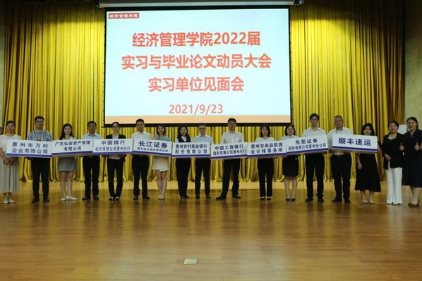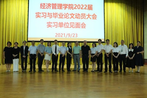 2021年9月23日,经济管理学院在鹅城会议厅召开2022届实习与毕业论文动员大会暨实习单位见面会,经济管理学院领导班子、专任教师、企业代表和2022届毕业生参加了会议,会议由经济管理学院副院长刘春梅主持。