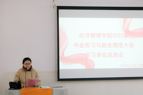 为进一步推进实习与就业工作,搭建协同育人平台,帮助毕业生了解实习就业工作,2021年12月28日,我院于旭日科技大楼B座105教室召开经济管理学院2022届毕业生实习与就业推进会暨用人单位宣讲会。经济管理学院领导班子、教师代表、企业代表和2022届毕业生代表参加了会议,会议由经济管理学院辅导员葛菁菁老师主持。