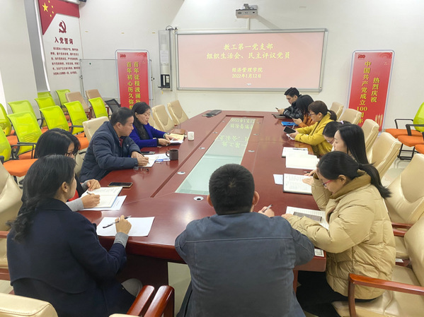 2022年1月12日上午,经济管理学院教工第一党支部于旭日科技大楼B栋1508会议室召开党员组织生活会、民主评议党员会议,教工第一党支部全体党员参加,会议由支部书记郭萍主持。