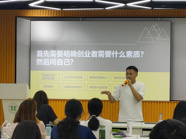 郭乐彬校友通过分享创业经历以及创业感悟从以下几个方面为大家传经送宝。一是需要明确创业者需要什么素质;二是自省是否具有以下素质,如明确的资源、扎实的专业基础、敏锐的思维能力、强烈的成功欲望、很强的管理能力、持续学习的欲望、坚韧的心理素质等等,当然他也提到“创业之于人生,不是必选项”,但我们可以用创业的思维经营人生。