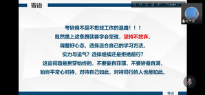 此次考研交流会使同学们对考研过程有了一个更具体、更清晰的认识,为今后的考研道路打下坚实的基础。