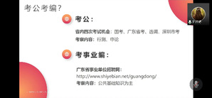罗伟婷校友分享了申请香港研究生的经验,包括大学选择、基本要求以及申请时间。接着,她针对读研后的就业选择,分享了考公考编的了解途径。她希望师弟师妹们在读研的选择上能遵循自己的爱好,多做尝试,选择适合自己的学校和专业。