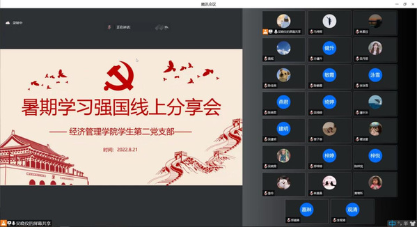 为深入学习贯彻习近平总书记系列重要讲话精神,持续推动“学习强国”学习实践深入人心。8月21日晚上,我院学生第二党支部开展了暑期学习强国线上分享会。