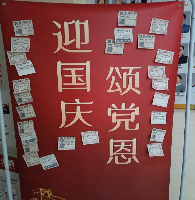 走访结束后,为迎接即将到来的国庆,大家用便利贴写下寄语,表达对祖国的浓厚深情和对未来的期望!