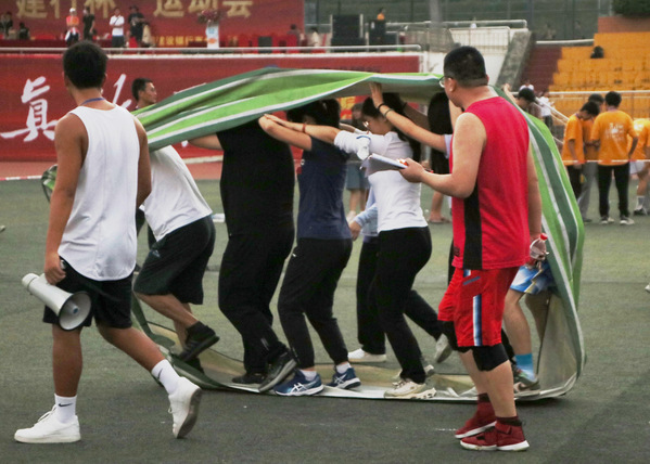 我院教工男子组在无敌风火轮趣味比赛中取得了第一名的佳绩。比赛现场气氛热烈,老师们在采访中表示获得成功的关键不仅在于身体协调,更在于共同合作。