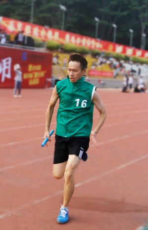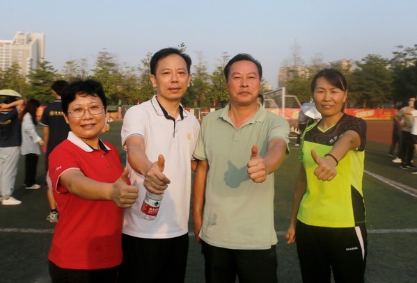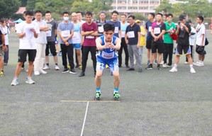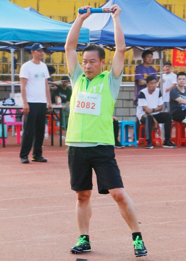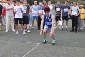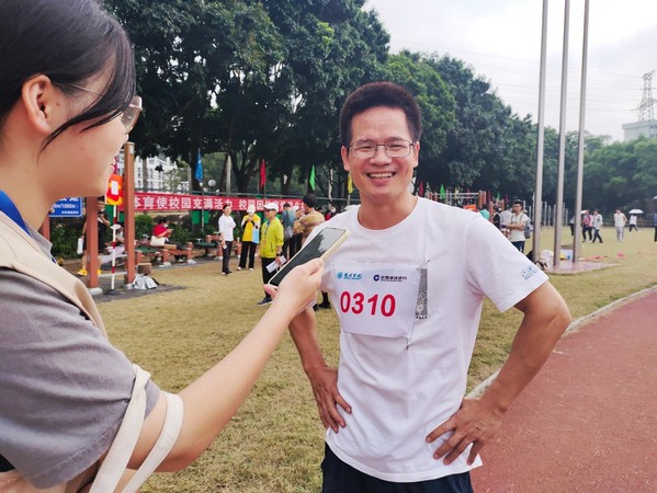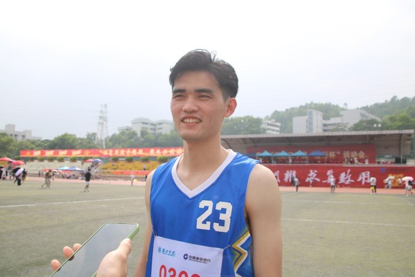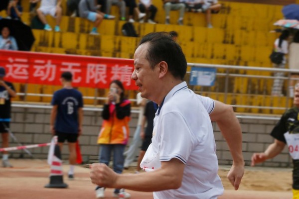 余学军老师在男子教工乙组100米决赛中取得了第三名的好成绩。在采访中余学军老师表示他每天都会进行运动,让自己保持着良好的体格、体力,才能取得令自己感到满意的成绩。