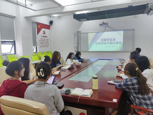 2022年11月23日,经济管理学院学生会于科技楼B座1508召开了“毓才计划”第四期优秀学生骨干经验分享交流会。会议邀请了第八届经管学生会主席团成员、第七届学生校长助理刘佳静同学作为主讲人进行分享,与学生会现任主席团与全体部门负责人进行交流学习。