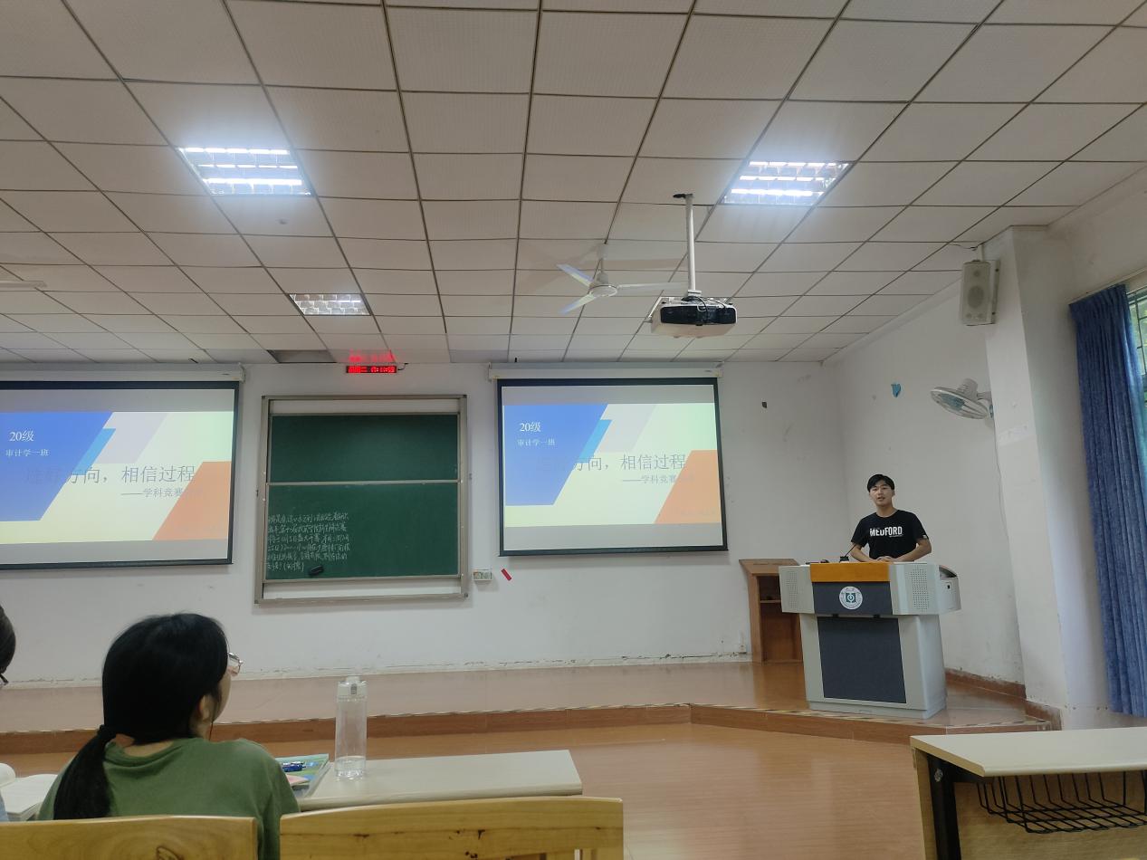 10月25日下午,经济管理学院学生第一党支部在田家炳楼101课室开展第七期“惠学”朋辈课堂活动,学生第一支部党员罗志鉴同学为新生分享学科竞赛经验。