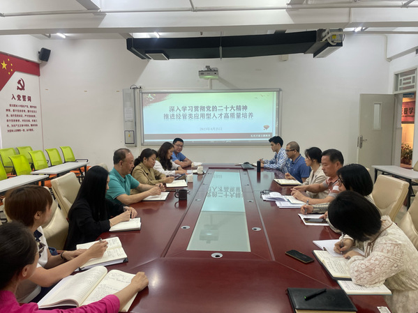 党总支委员、副院长刘春梅结合学院实际,就推进经管类应用型人才高质量培养做主题发言。她表示,我院教师要深刻学习领悟习近平总书记关于教育的重要论述,以“九个坚持”为根本遵循,培养德智体美劳全面发展的社会主义建设者和接班人;围绕“六个下功夫”,把立德树人融入教育的各个环节,广大教师要立足岗位,压实责任,深入推进学院各项工作。各党支部书记和系主任在会上分别就学科专业建设、支部建设等问题进行交流发言。