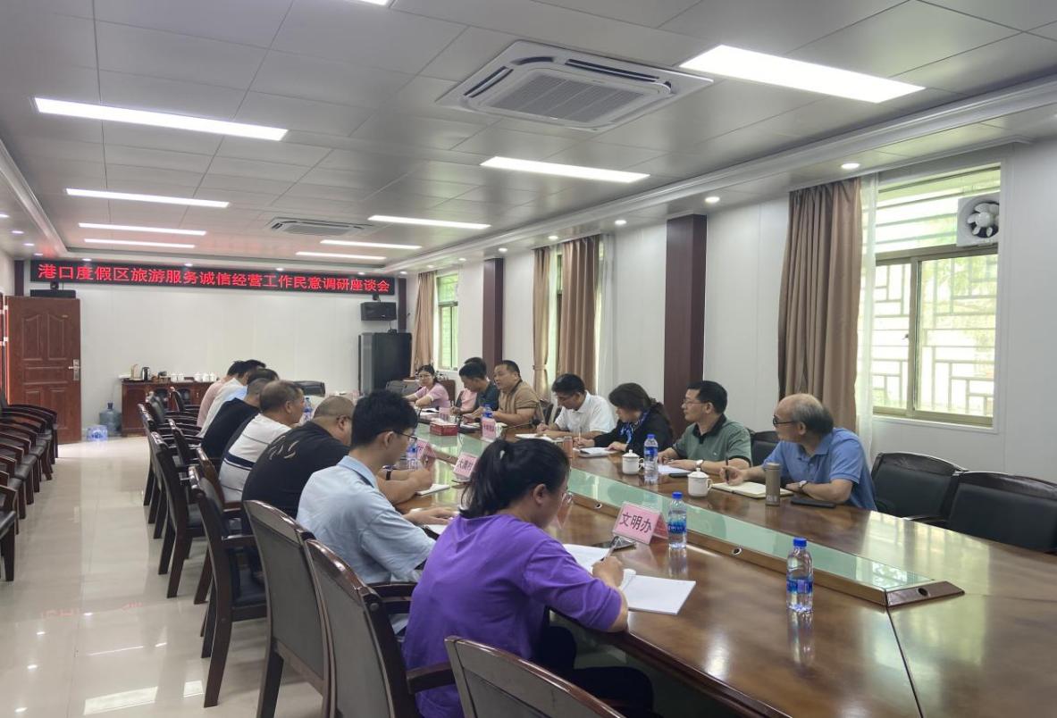 当天下午,在港口度假区管委会协调下,郭萍副院长一行与港口度假区管委会相关职能部门、个私协会及部分村级组织负责人进行调研座谈,进一步了解当地旅游业发展过程中存在的问题,现场征集了与会人员对做好诚信商户评选的意见和建议,为下一步开展项目研究提供了丰富素材。